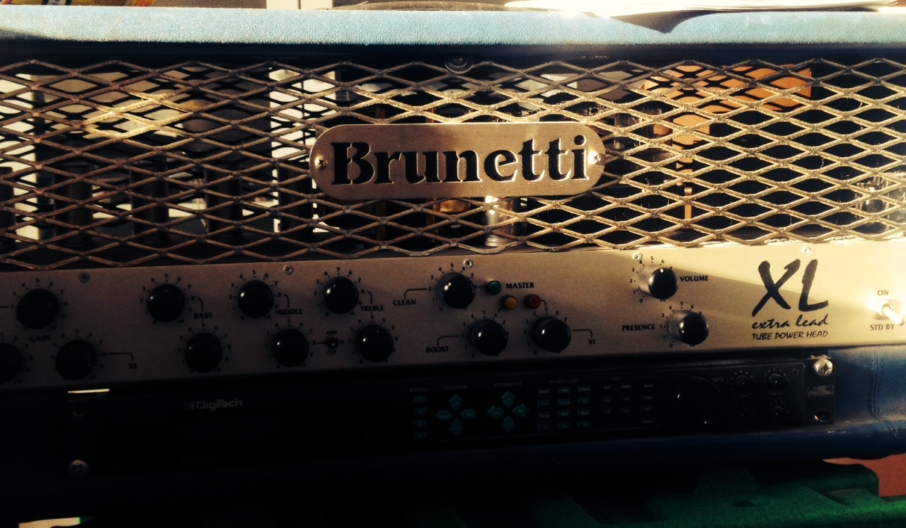 Marco Brunetti ha realizzato questa testata in versione “Custom” con i ritorni stereofonici, elementi che le testate in genere non hanno mai, per consentirmi di interfacciarmi con i multi effetti in stereofonia. Questo mi permette di usare qualsiasi macchina con gli stereo delay, o pan delay, o chorus delay: possibilità, secondo me, molto utile per chi come me suona dal vivo.